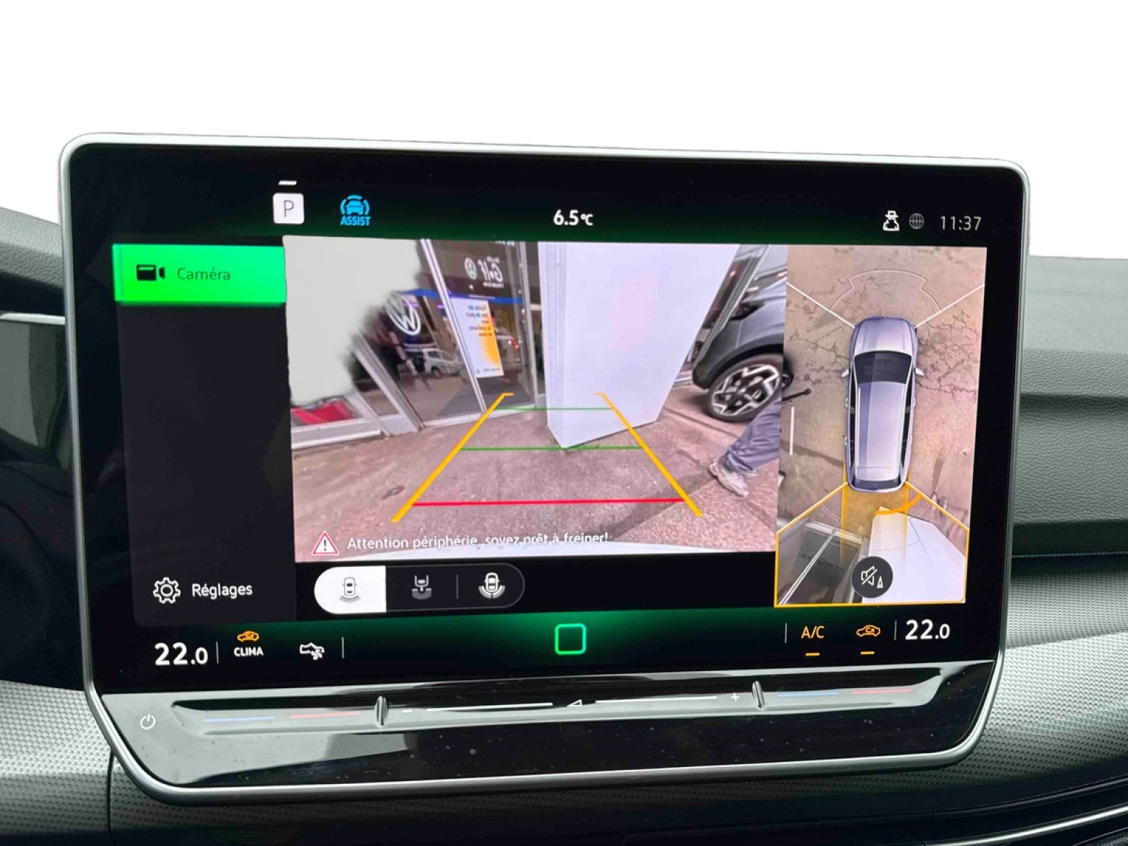 - Lane Assist: Assistant de maintien de trajectoire: corrige, dans la limite du système, le mouvement du volant AV que le véhicule dépasse involontairement la bande de roulement. Système actif à partir de 65 km/h