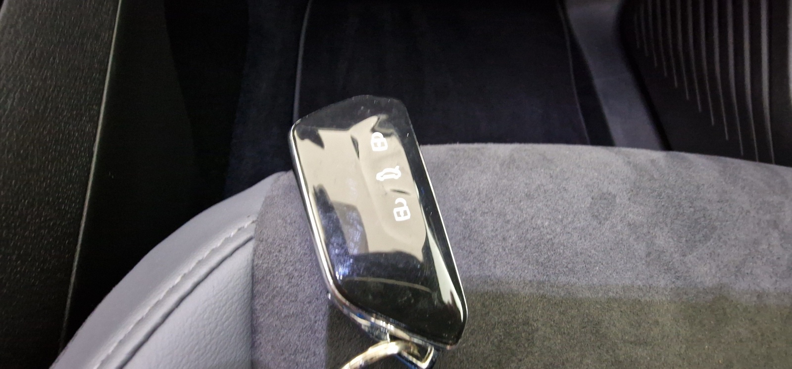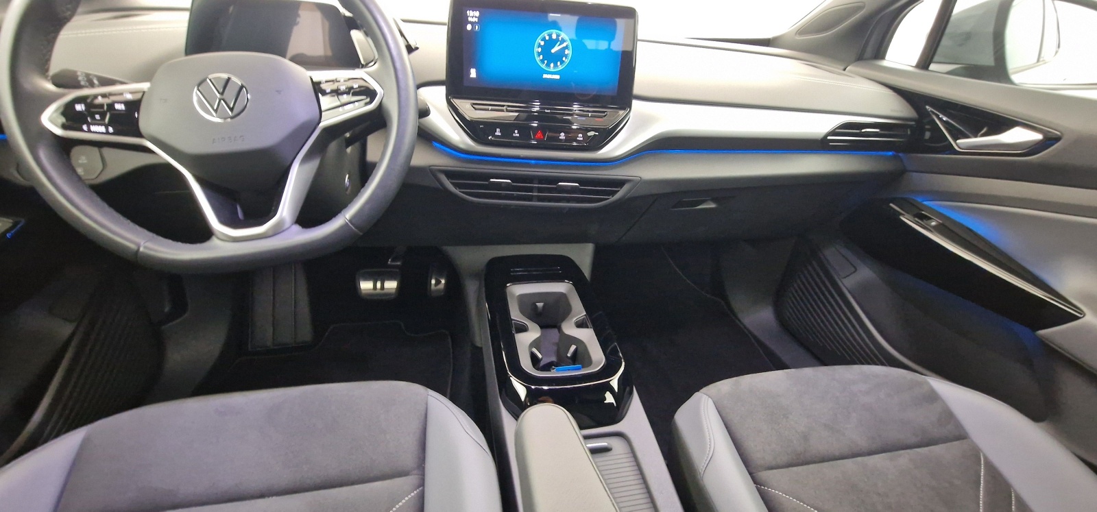 - Intérieur Style Gris Platinium avec habillage et volant Noir avec sellerie en ArtVelours et similicuir, tableau de bord personnalisable, revêtement du tableau de bord et des portes soft-touch, éclairage d'ambiance personnalisable, pédalier en acier inoxydable avec symboles Play et Pause, banquette AR 3 places rabattable (2/3 - 1/3) avec trappe à skis, sièges AV réglables en hauteur