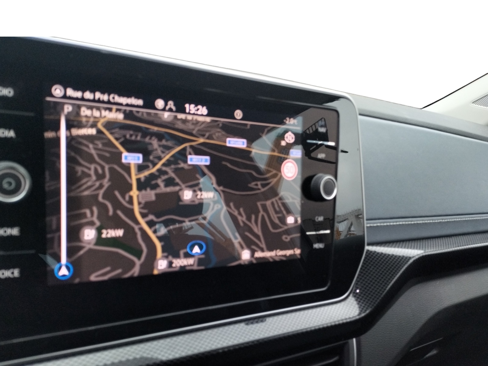 - Radionavigation 6 HP AV/AR (4x20W) avec: Système Navigation & Infotainment "Discover Media" avec Services de streaming et radio via Internet via carte eSIM intégrée Écran couleur tactile 8" haute résolution (800x480) Double tuner FM Affichage de la plage de lecture, du logo de la station à l'écoute Lecture des formats audio MP3 Port USB-C compatible Apple Affichage de la carte en 2D Affichage des logos des Points d'intéret, des limitations de vitesse, des zones de danger, etc. Interface Bluetooth avec fonction Audio Streaming A2DP Préparation pour "VW Connect" et "VW Connect Plus"