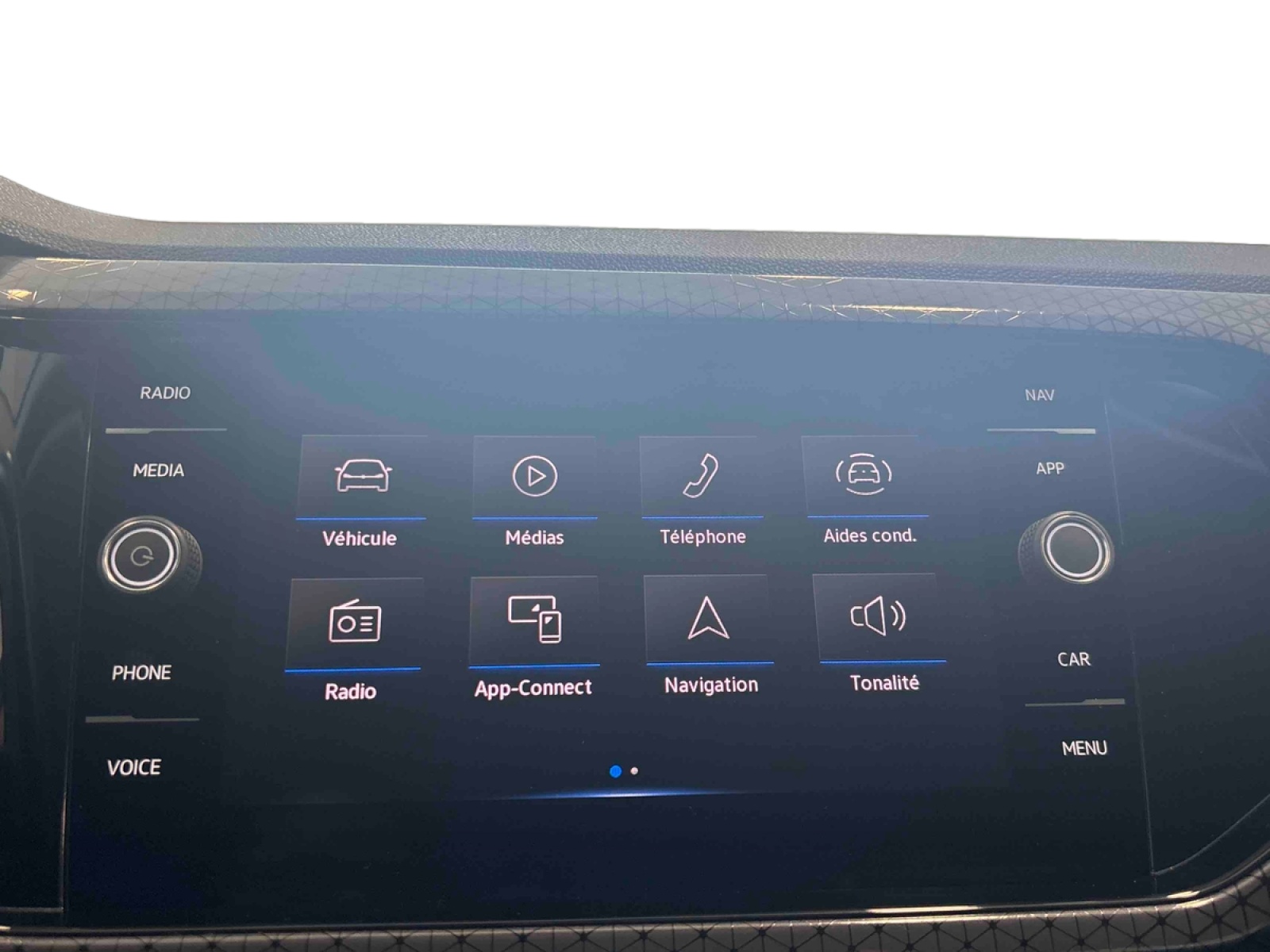 - "App-Connect" sans fil affichage et contrôle via lécran tactile du véhicule, du contenu, des fonctions et des applications compatibles présents sur le Smartphone (compatibilité avec les systèmes Apple CarPlay et Android Auto). Fonction sans fil uniquement disponible avec Apple CarPlay. Seuls les contenus validés et utilisables en «main libre» peuvent fonctionner