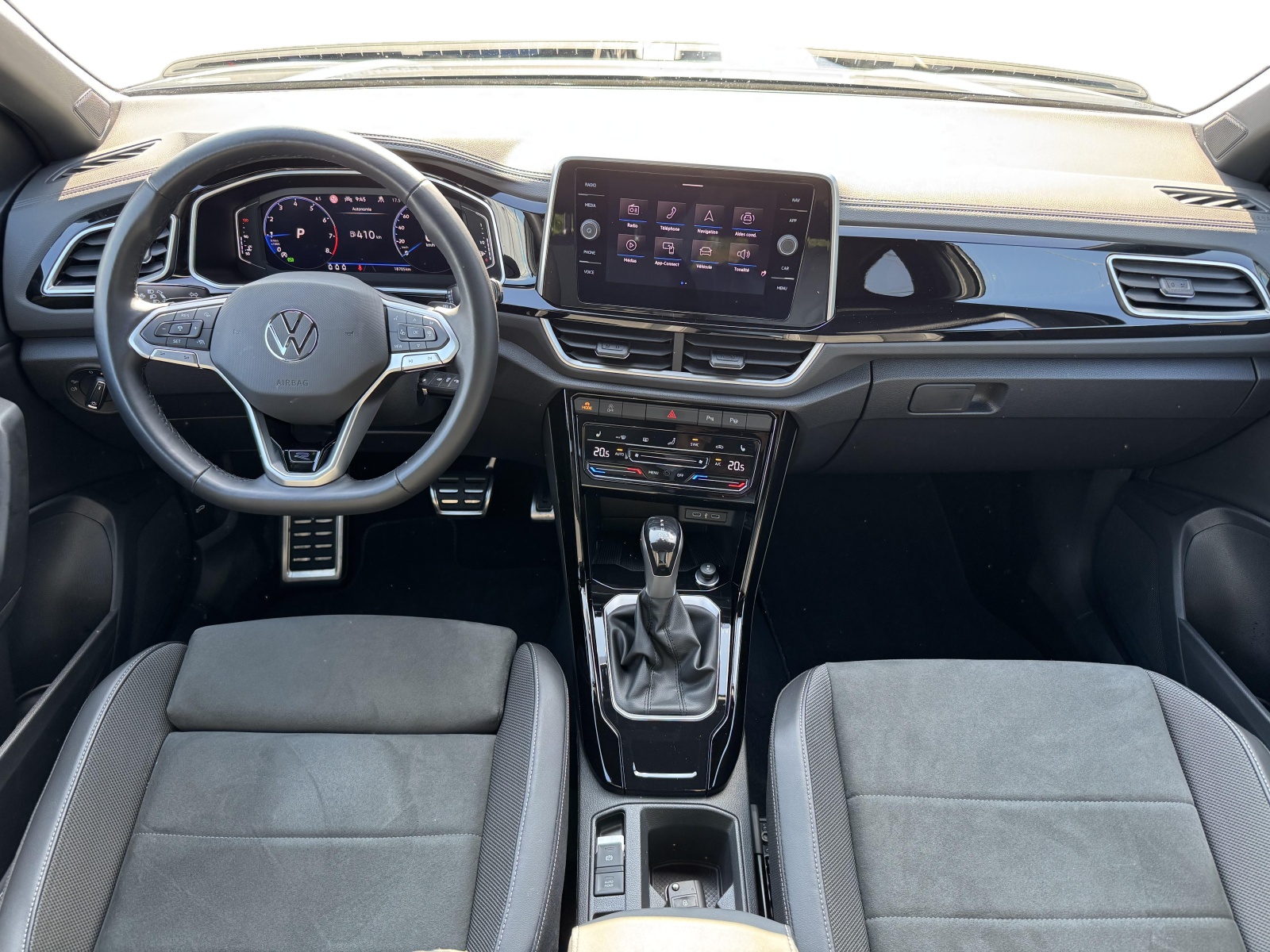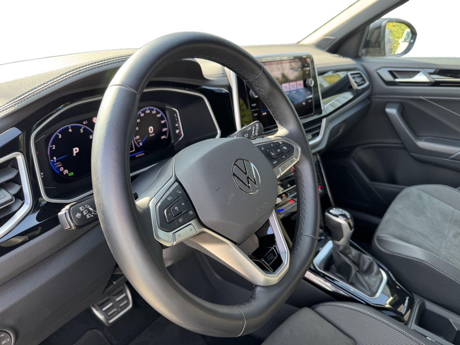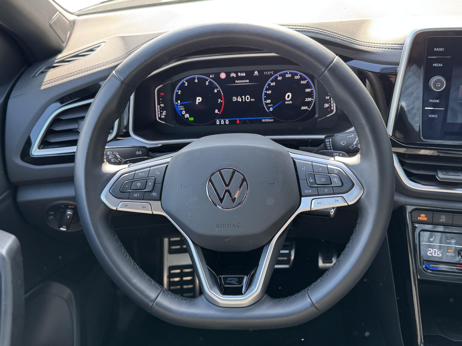 - Volant sport multifonction à touches physiques en cuir et logo R-Line et capacitif