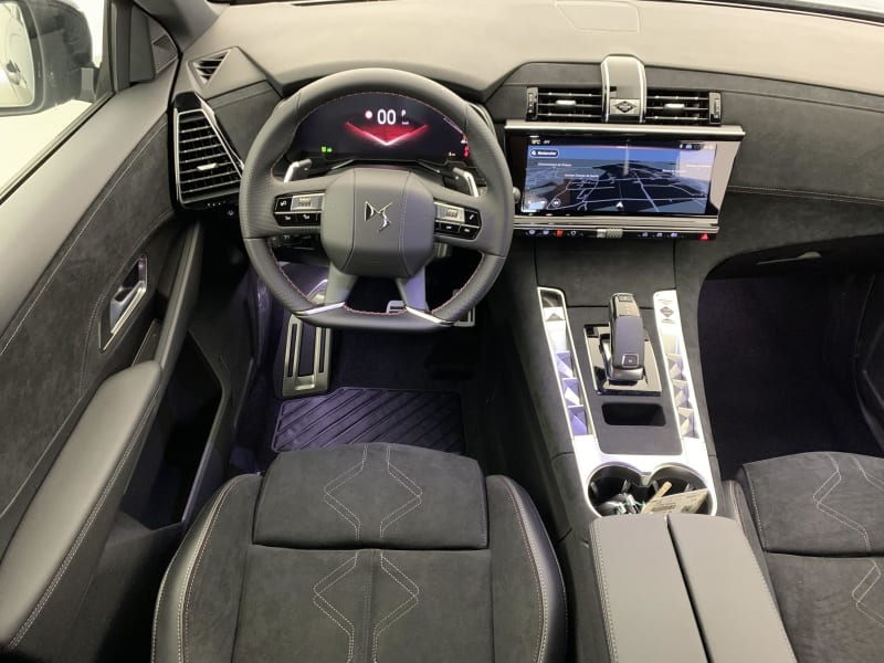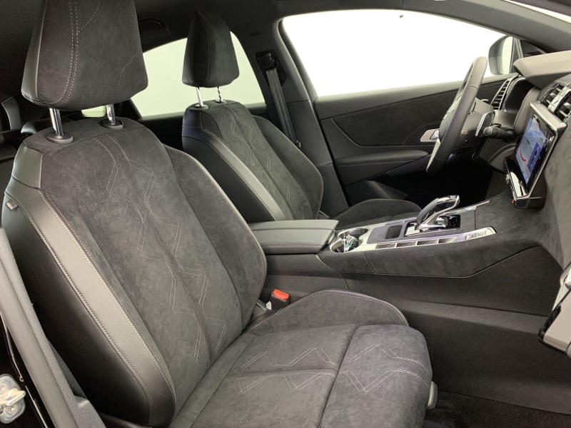 - Intérieur Alcantara Noir profond : Console centrale en Alcantara Noir Profond Panneaux de portes en Alcantara Noir Profond et surpiqûres Carmin et Or Planche de bord Alcantara Noir Profond et surpiqûres Carmin et Or Volant Cuir fleur perforé et coutures Carmin et Or Sièges Alcantara Noir Profond avec Toile DS