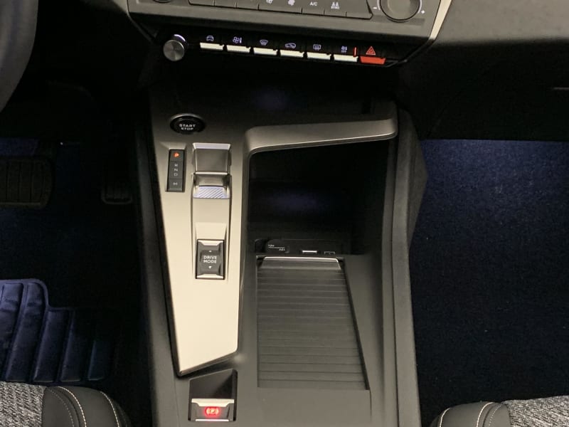 - Eléments de design intérieur Planche de bord moussée avec décor tissu gris chiné, Panneaux de portes avec décor tissu gris chiné, Accoudoirs de portes en similicuir avec surpiqûres gris Tramontane, Éclairage des caves à pieds AV à LED