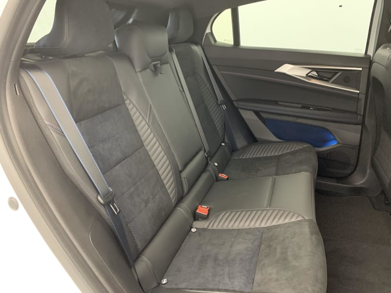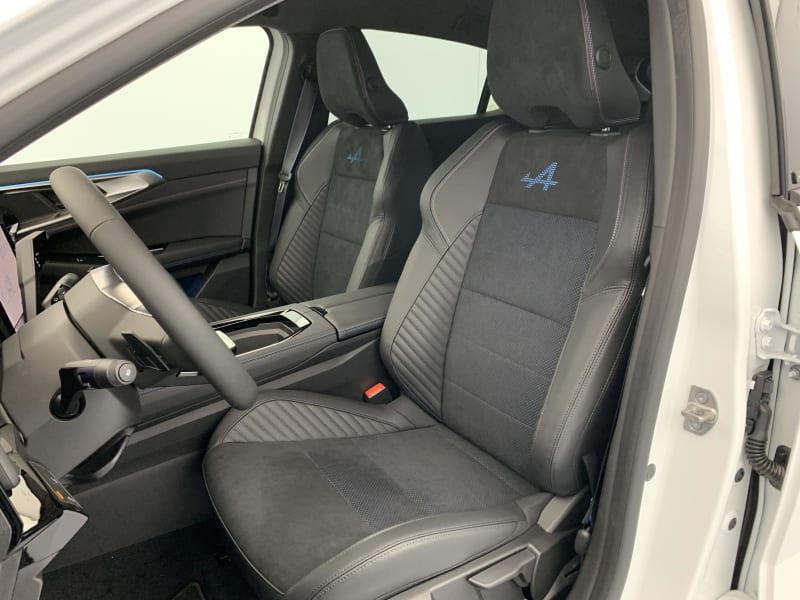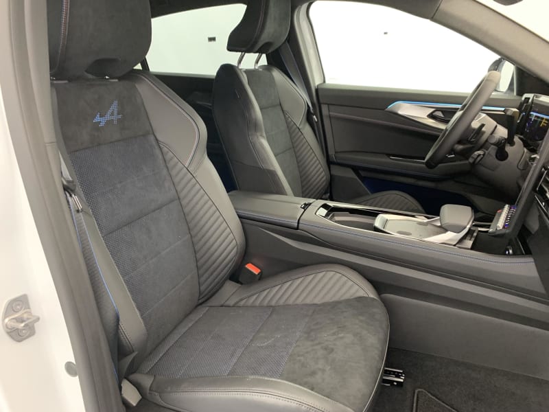 - Sellerie mixte Alcantara avec surpiqûres bleues et logo Alpine lumineux