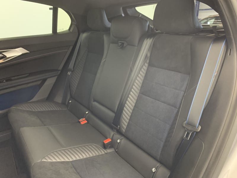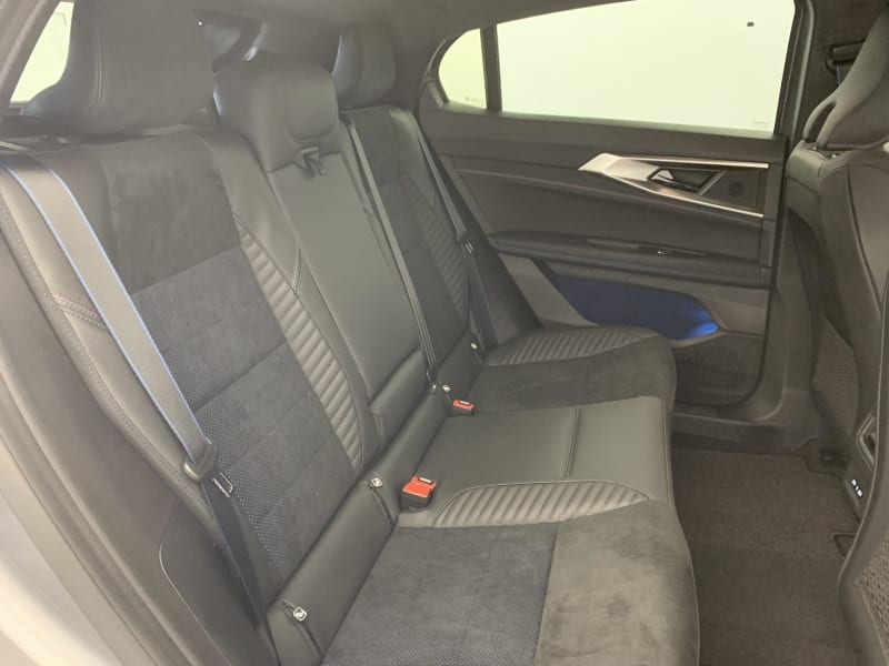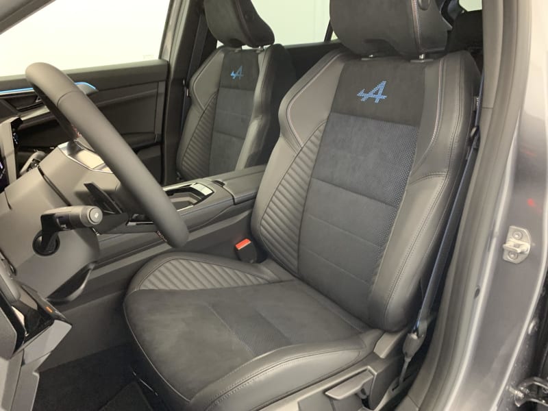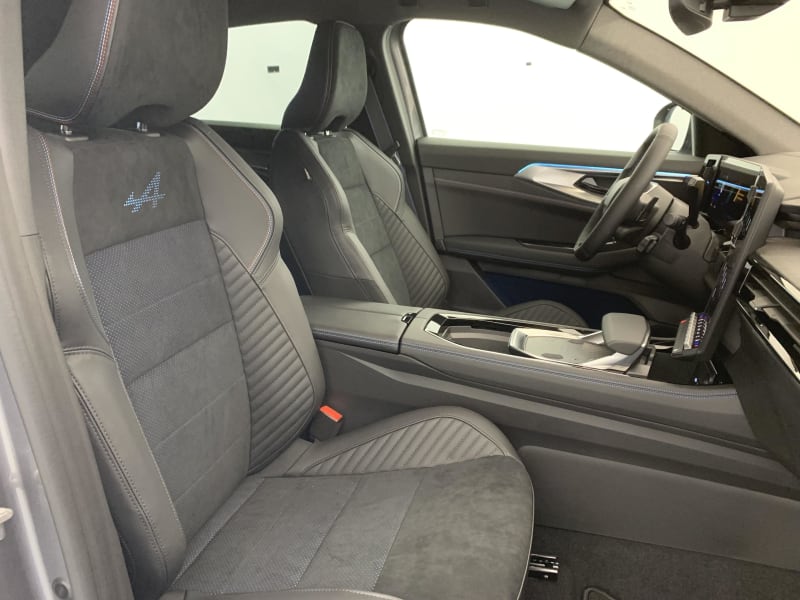- Sellerie mixte Alcantara avec surpiqûres bleues et logo Alpine lumineux