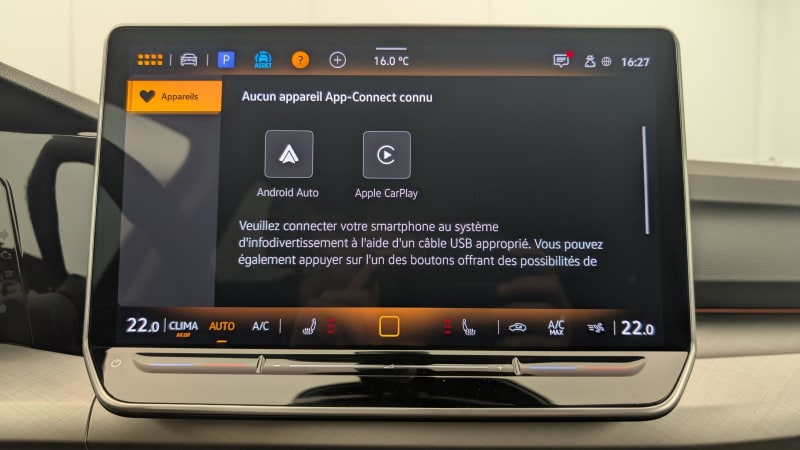 - App-Connect sans fil affichage et contrôle via l'écran tactile du véhicule, du contenu, des fonctions et des applications compatibles présents sur le Smartphone (compatibilité avec les systèmes Apple CarPlay et Android Auto)